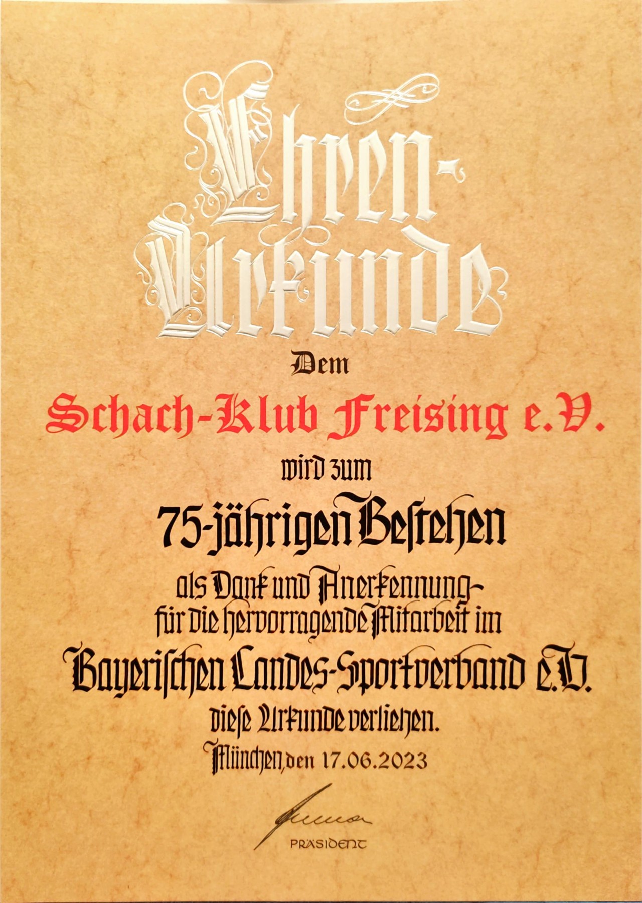 und das Jubiläum "75 Jahre Schach-Klub Freising"