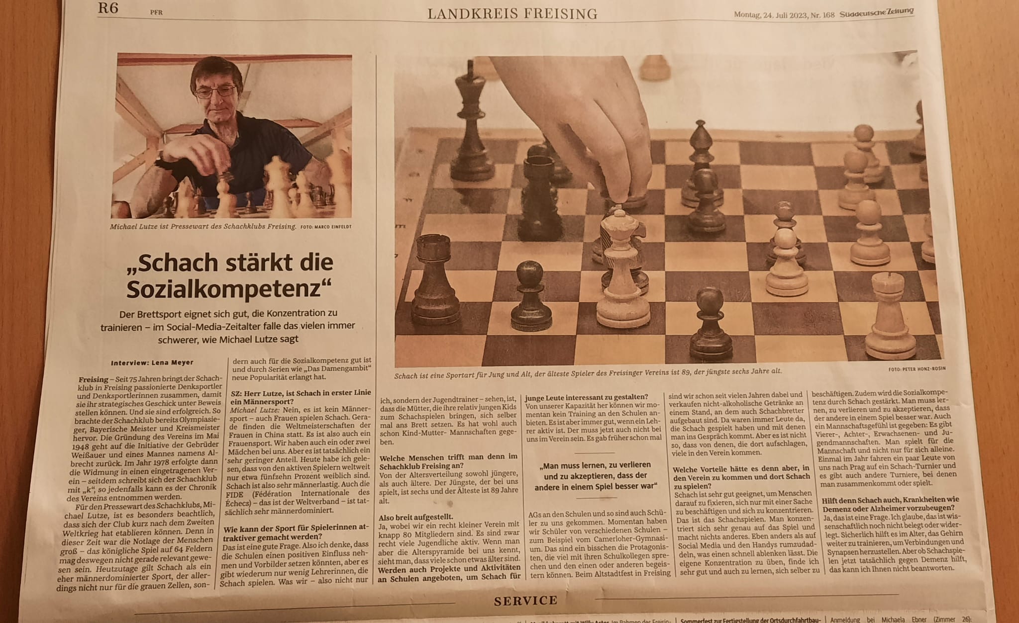 Interview mit unserem Pressewart Michael Lutze, Süddeutschen Zeitung - Lokalteil Freising - vom 24.07.2023
