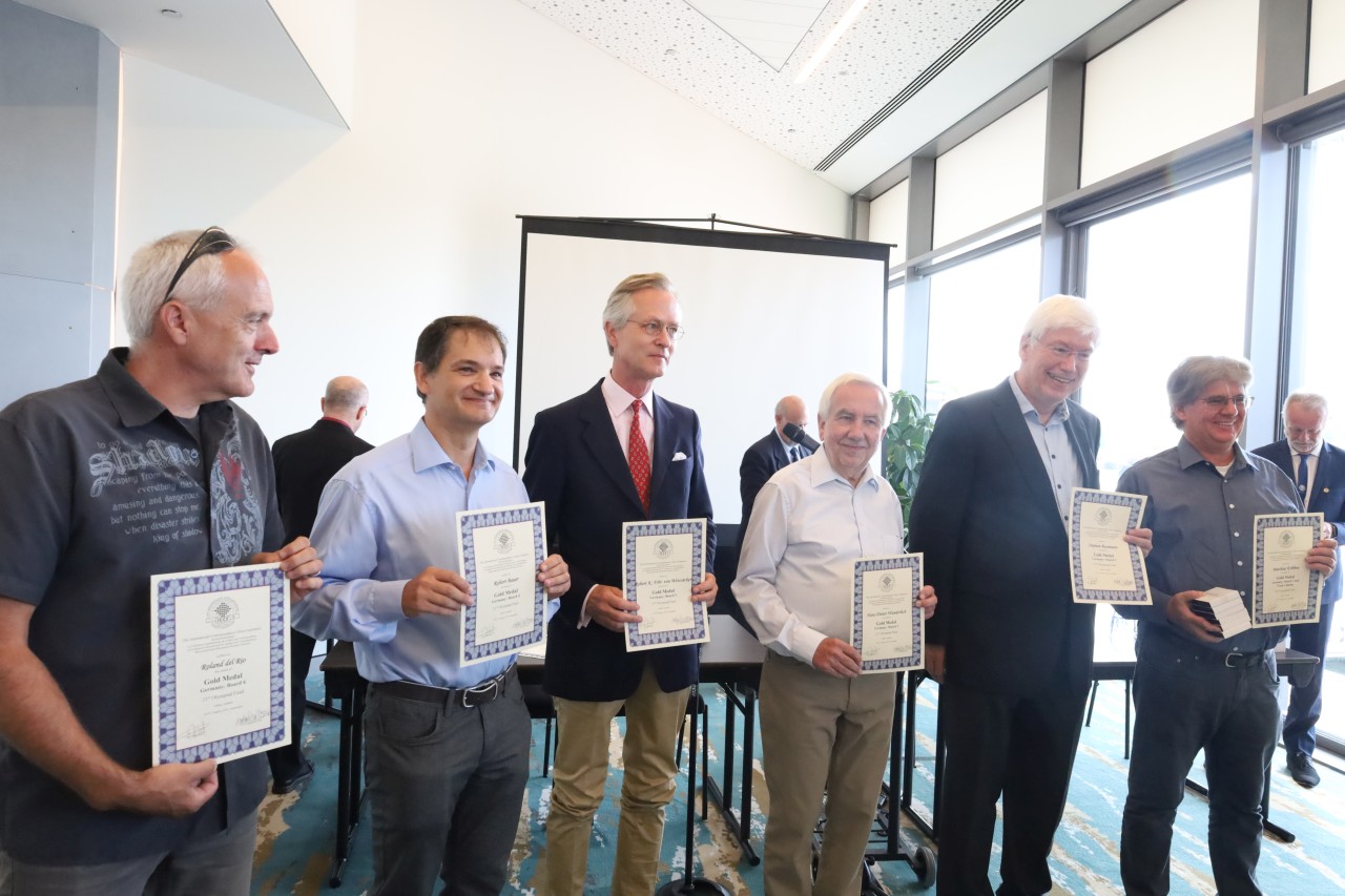 Mitte August wurden im Rahmen des Fernschach-Kongresses nun die Gold-Medaillen verteilt. Die sechs Mitglieder des deutschen Teams reisten dafür nach Amsterdam.