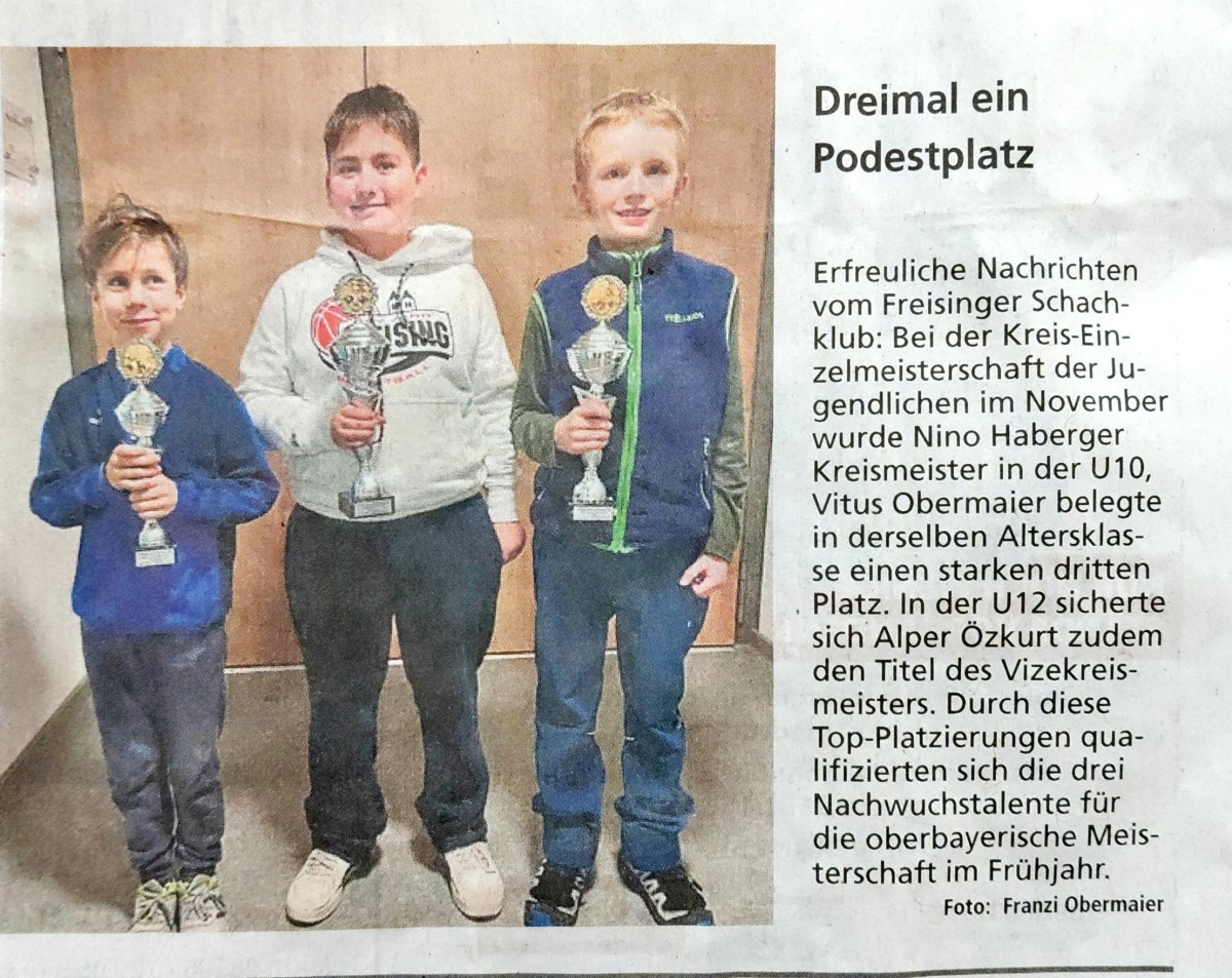 07.03.2026: U12-Kreisliga: Kreismeister Freising U12-1 mit 30:0 Mannschaftspunkten; 3. Platz: Freising U12-2; 12. Platz Freising U12-3; insgesamt 16 Mannschaften